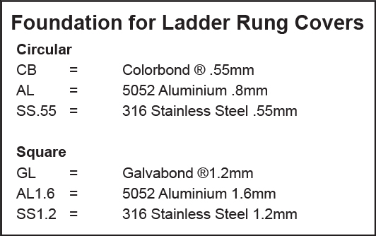 Advance Anti-Sip Surfaces antislip Class 1 metal backed Ladder Rung Covers are available in two distinct styles, circular and square, which snap fit easily over the rung providing a long lasting, highly visible surface to climb. Ladders can be a means of access that is used less often than walkways or stairs, therefore adding Advance Anti-Sip Surfaces antislip Ladder Rung Covers will not only make the ladder a safe piece of equipment, they will usually last for the useful life of the ladder.